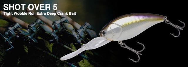 「ショット オーバー 5」 ハードベイトの潜行深度としてはほぼ限界と言える水深5mをオーバー。しかもその水深をドラッギングやニーリングではなく、通常のキャスティングでトレースできる優れた潜行能力を持つディープクランクが「ショット オーバー5」です。「オーバー4(トリプルフルサイズ)」と同じ75mmのボディでありながら14lbラインで5.4m、10lbでは6.0mへ到達させることが可能。さらにボディサイズを抑えたことで巻き抵抗も低減し、広大なエリアでも引き続けられる軽いリトリーブ感を獲得しています。もちろん「オーバー4」同様に、安定姿勢でロングキャストを可能にするキャスティングフィンを採用し、ウィードやソフトボトムへの刺さりを低減するノンスタックビル仕様。アクションは水質を選ばないオールコンディション対応を狙ったタイトウォブルロール。しかもボディとリップとを別成型し組み合わせる構造を採用し、カラーによってボディマテリアルをボーンホワイト系ABSとクリア系ABSを使い分け、これによりカラーに伴ってアクションやサウンドの差も生まれ、アピールの強弱という引き出しをさらに広げます。効率の良い釣りがしにくいディープウォーター攻略の中で、圧倒的にスピーディーな展開が可能なディープクランキング。その優位性が「ショット オーバー5」でさらに際立ちます。 Type Floating / Low Sound Depth 14lb./5.4m 10lb./6.0m Length 75mm Weight 24.8g