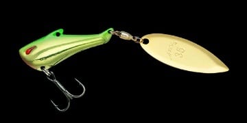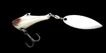 「インザベイト バス」は、『フックやブレードがラインに絡む“故に”ムダ撃ちが多発してしまう』そんなトラブルを徹底的に排除。フックアイ周辺のボディに厚みを持たせることで、フックがヘッド側へ回り込むのを防ぎ、さらに万が一回り込んでもフックポイントが瞬時に抜けやすいヘッド形状にデザインしています。また、ボディから一段高い位置に設けたテール部の“キックアップアイ”により、フリーフォールの際にもラインを拾いづらい位置でブレードを回転させることが可能になりました。つまり、有効キャスト数が圧倒的に増え、なおかつフォーリング中もバイトが期待できるということ。テールスピンジグの潜在能力を極限まで引き出す設計なのです。ボディ素材には高強度合金を採用。そして、「インザベイト」の釣れる要素として絶対に欠かせないのが、ノリーズ“V”ブレードの存在。“釣れるスピナーベイト”として定着した「クリスタルS」のブレードが生み出す強烈なフラッシングとバイブレーションは、テールスピンジグとのマッチングにおいても健在です。フラットエリアや中層でベイトのスクールが多く映るときは一度ボトムをとってからのタダ巻き、ブレイクや急深なエリアではリフト&フォール主体でOK。難しいテクニックを必要としません。これは意外に知られていないことですが、ボイルに対応した表層リトリーブも効果的です。ディープウォーターはもちろんのこと、あらゆるレンジを、素早く、横方向に、しかもスモールボリュームでありながら強力なアピールとともにチェックできる特性は、唯一無二といっても過言ではありません。