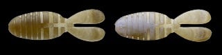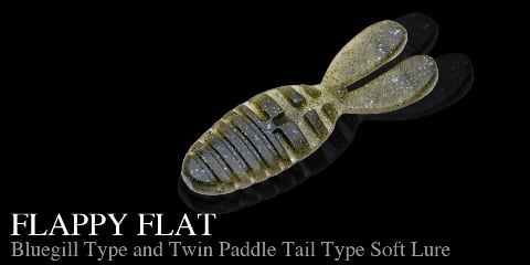 ブルーギルやフナ、タナゴなどのフラット系ベイトフィッシュを好んで捕食するビッグフィッシュを狙うために、プロスタッフ 中川瑠凱が開発したソフトベイトが「フラッピーフラット」。ボディの半分をジョイント形状にすることにより、この形状のソフトベイトの泣き所であるフッキング率という課題を解決しています。フォール中には2枚のパドルをパタパタと動かすアクションを生み出し、視覚と波動でバスの本能を刺激します。さらにボディ裏側のジョイント部の一部をあえて盛ることにより、フックのズレ防止になるだけでなく、フックポイントを出す位置の目安になっており、誰でも容易にフックセットができる仕様になっています(オフセットフック1/0〜2/0を推奨)。フリーリグやヘビーキャロライナリグ、リーダーレスダウンショットなどベイトタックルでストレスなく扱えるリグに幅広く対応。また、ラバージグのトレーラーとしての相性もよく、カバー撃ちでのスライドフォールアクション、スイミングアクションでも2枚の大きな横パドルがしっかりと水を動かしてアピールしてくれます。