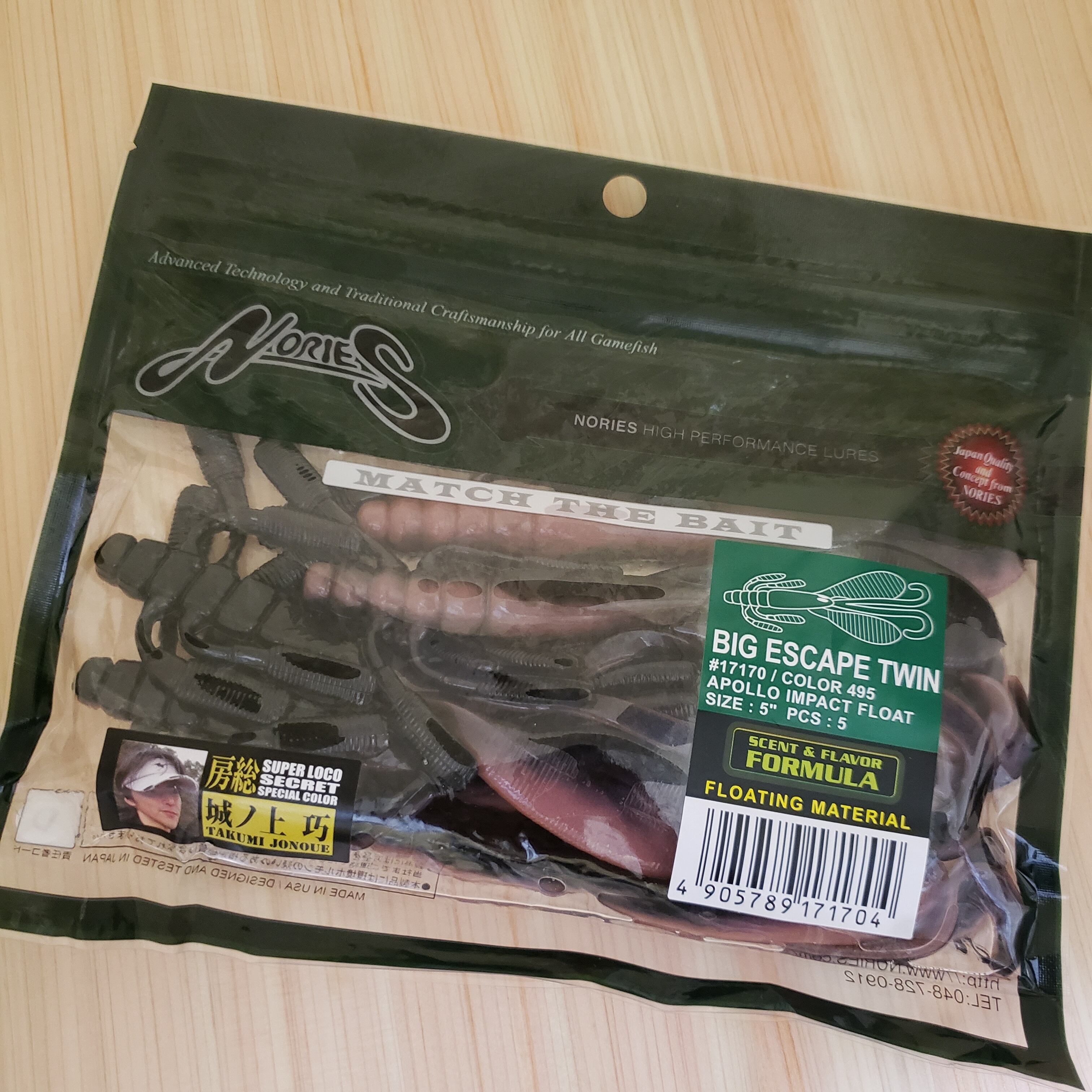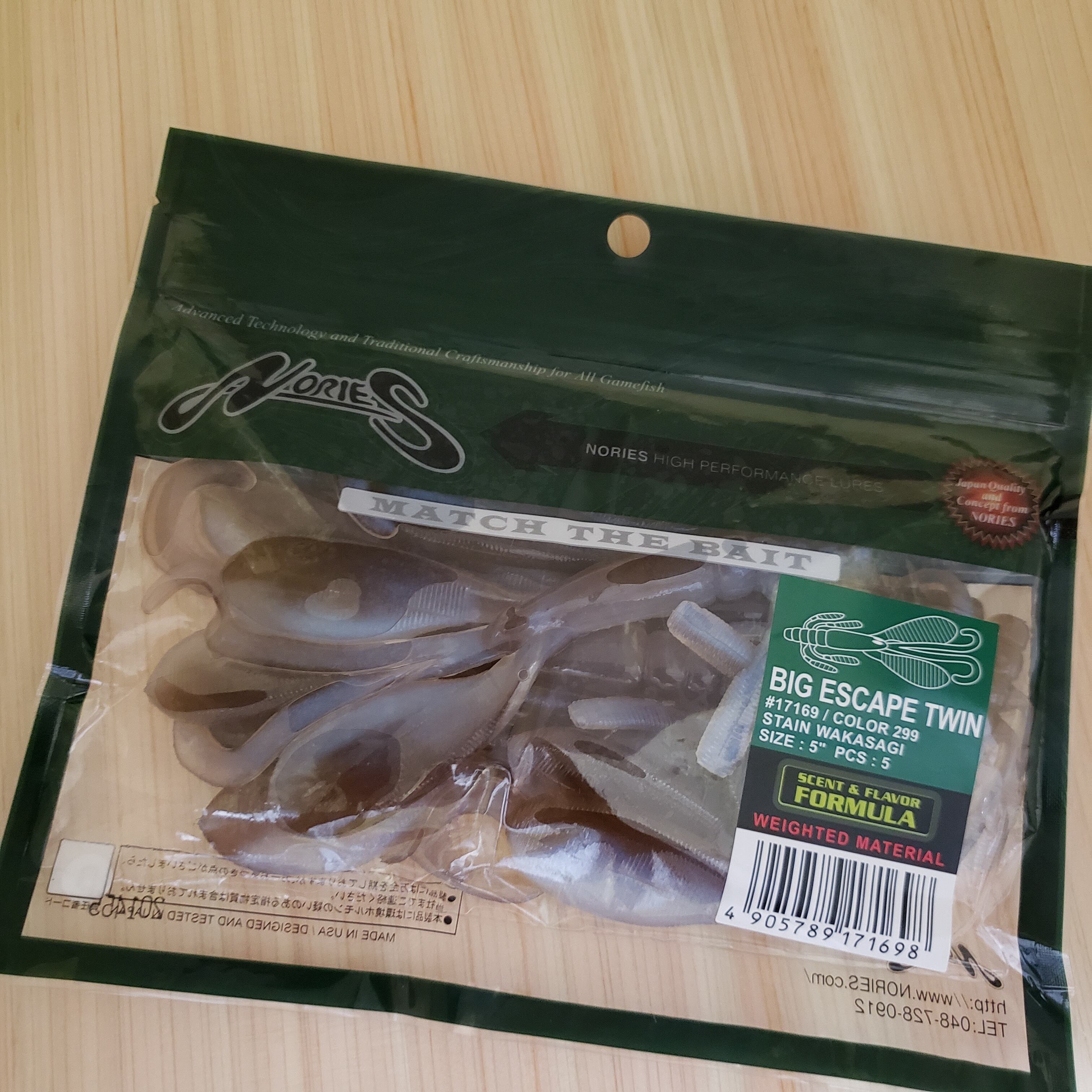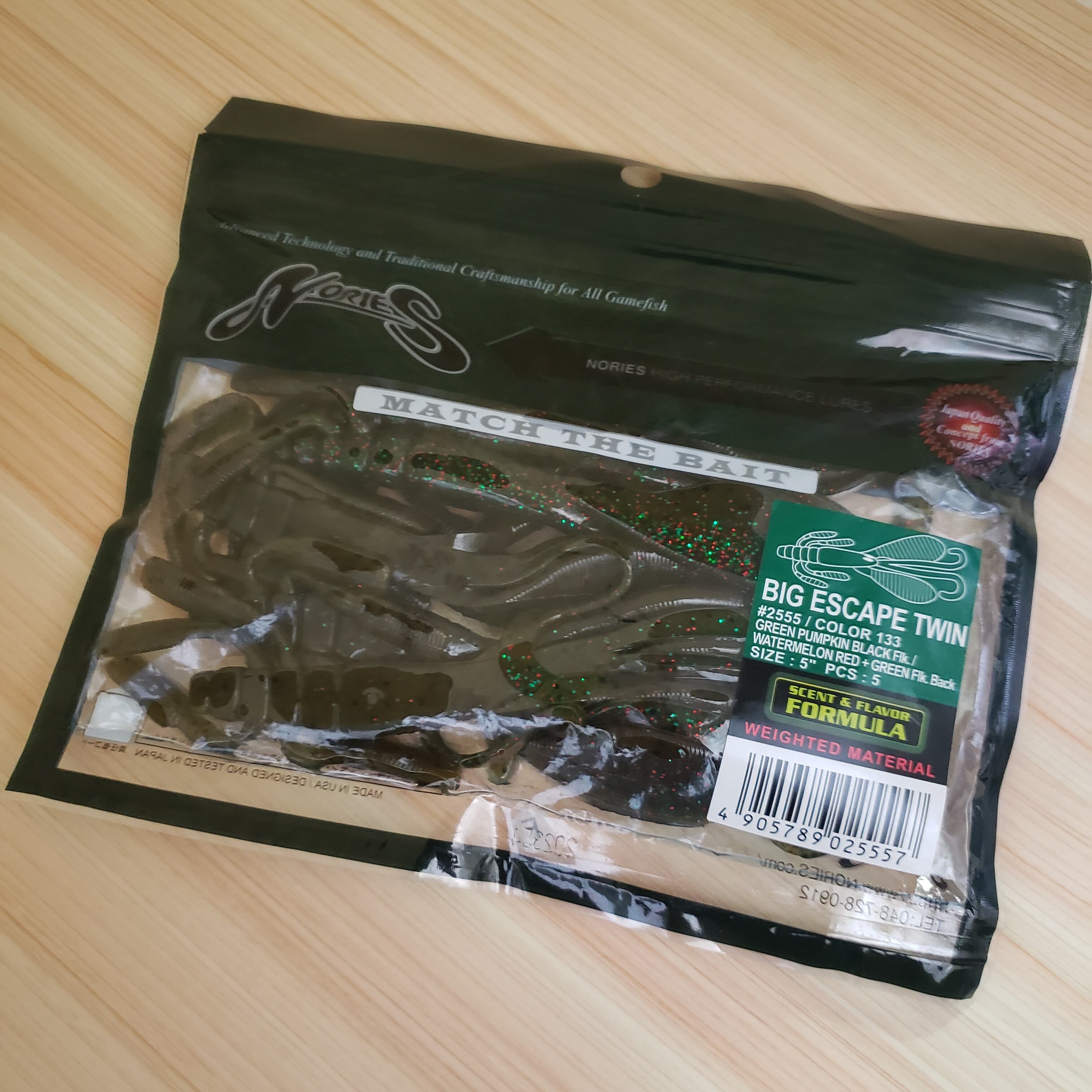 信頼のバルキーベイト「エスケープ ツイン」がさらにボリュームアップ。最強のバルキーベイトとして生まれたのが「ビッグエスケープ ツイン」。ヘビーテキサス、ヘビーキャロライナでの使用はもちろん、ラバージグトレーラーとして対ビッグフィッシュ戦略に圧倒的な存在感で挑めます。重厚なメインパドルが水を掻き乱し、2対の逆付けレッグとカールした触角が水を掴みます。ノーシンカー状態では水平に、しかもスローフォール。ヘビーテキサスでもキャロライナのようにシンカーだけを先に落とすノーシンカー水平フォールが可能です。マテリアルは高比重素材をメインにソルトを配合。単体で約18gの質量は抜群のピッチング操作感を誇ります。もちろんバスが好む味と匂いの特殊粒子を配合し、このボリュームであっても深いバイトを出して、確実にフッキングすることができます。ソフトベイトでは最強クラスの位置付けとなる「ビッグエスケープ ツイン」。その可能性は計り知れないものを秘めています。