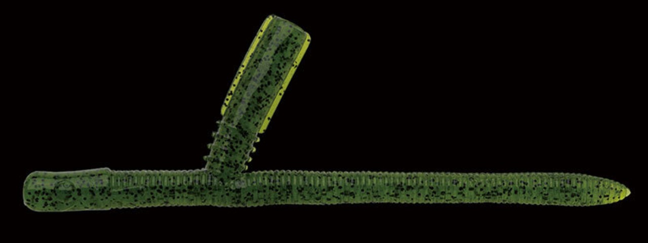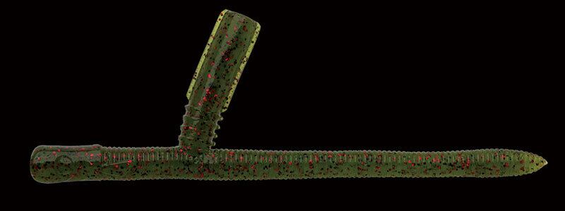追求されたフックセット位置や、ボディバランスにより、従来のストレートワームとは異なるアクションが生まれ、複雑な波動でスレたバスにも口を使わせます。