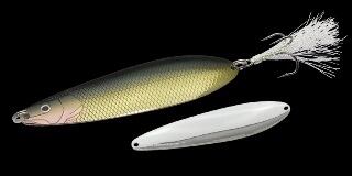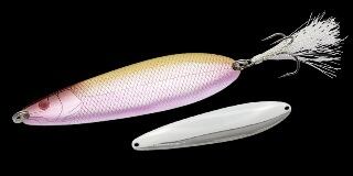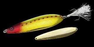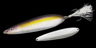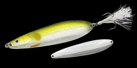 効率が悪くなりがちなディープウォーターでも一撃で勝負を決める早さと強さを持つビッグスプーンが「ダイラッカ 38g」。最も活躍するのは水深5〜10mレンジのベイトが絡むスポット。基本テクニックはキッチリとアクションさせられる20m前後のキャストでアプローチし、ボトムを取ってからロッドを縦に2ジャークしてフォール、これを3回ほど繰り返したらピックアップ。フォールのアピールを主体とした早い展開です。「ダイラッカ 38g」のフォールはボディーをウォブリングさせ、しかもイレギュラーにコースを変えながらのバックスライドフォール。明滅しながら放つ強烈なフラッシングで広範囲にアピールしながらフォールします。ジャークやリトリーブでは頭までも振るS字系ウォブリングに時折イレギュラーなスライドが混じる絶妙なアクションで、ナーバスなビッグバスもリアクションバイトへ持ち込みます。ドラゴンルアー代表・秋林義継氏が考案し足立貴洋プロが実釣テスト、ノリーズが作り込んだ「ダイラッカ 38g」。その圧倒的なビッグフィッシュアピール力をぜひ体感して下さい。