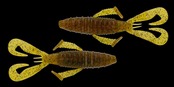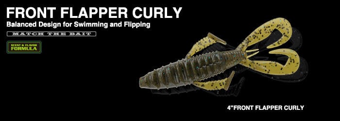 バルキーベイトフォルムの中に優れたスイム&フォールアクションを詰め込んだのが「4”フロントフラッパーカーリー」。名前の由来となるボディーセンターから出るフロントフラッパーは、ボディー前方からの強い水押しを作り出す新設計のデザイン。操作した時の抵抗感は今までにない強さを感じられるはず。ツインカーリーテールは強振動を発生して魚を引き付け、そして独特な深いリブで構成するメインボディーも強い水掴みにより優れた操作感を発生。さらにフックポイントを露出しにくい高いスナグレス性を持ちながらも、高確率でのフッキングを可能にします。スイミングからカバー撃ちまですべてをこなす優れたバランス設計で、テキサスリグをメインにフリーリグ、リーダーレスダウンショット、ラバージグトレーラー、ヘビキャロでも秀逸なのが「4”フロントフラッパーカーリー」です。
