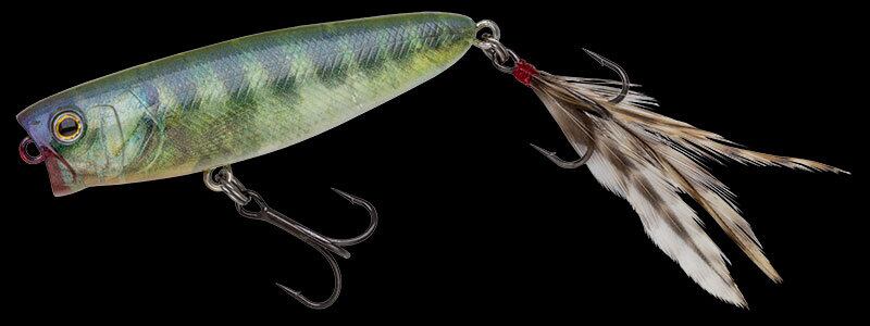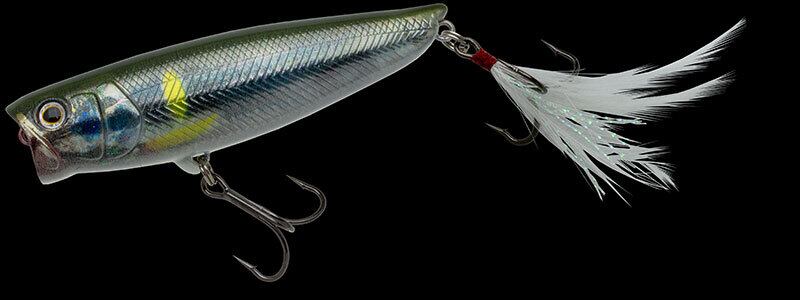 バスが常にハイプレッシャーに晒されているトーナメントレイクやメジャーレイク。そんな場所でも意外と口を使わせやすいステージが“水面”。「タフバグ」はそのステージを最大限に活用する“タフタイムポッパー”として誕生。高精度でキャストしやすいベイトキャスティングタックルで扱えるウエイトで、着水音を抑えたピンスポットキャストが可能。それでいてバスを驚かすことのない適度なボリューム感。テールを沈めた浮き姿勢から移動距離を抑えてドッグウォークできるピンスポット攻略バランスと、ダイブを織り交ぜた派手すぎないナチュラルポップ音&スプラッシュ。タフタイムのスレきったビッグバスも思わずバイトしてしまう食わせ系ポッパーです。オリジナルサイズの「65」はベイトキャスティングタックルで無理なく扱える絶妙なウエイト感で、スピニングタックルにも対応。「ビッグ80」はより強いタックルでも扱えるサイズで、カバー攻めのダブルフックチューニングにも対応するアイマウントも装備。よりカバー奥への攻め込みが可能に。もちろんロングキャスト性も向上しています。