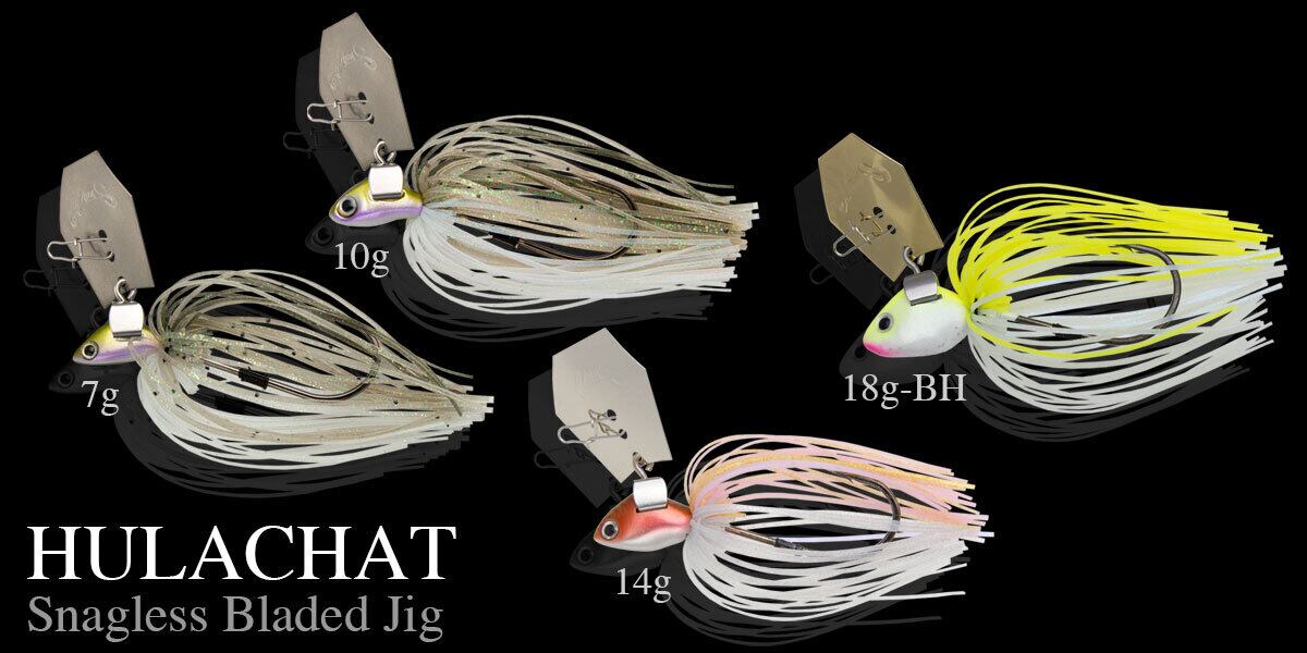 類いまれな障害物回避能力を持つチャター系ベイトが「フラチャット」。スイミングジグと同等のレンジコントロール性能や対カバー性能などはもちろん、ソフトベイトへ強制的に波動を与え、バスに気付かせやすくするクラッカーサウンドを発生させる極薄ハイピッチブレードとステンレス製ブレイドヒッターにより、巻きモノとしてのハイアピール性能をも獲得しています。クランクベイトのリップ形状のようなヘッドバランスはルアーを浮き上がらせることなく、理想とする水平スイミング姿勢をキープ。オリジナルカットのスカートボリュームとハイピッチブレードによって、思い通りのリトリーブスピードを作り出せるのも「フラチャット」ならではのコンセプト。中層からボトムギリギリでのリトリーブ、さらにはロッドワークによるリフト&フォール、ボトムタッチ&カーブフォールに至るまで、自由自在のパフォーマンスはチャター系ベイトとしての潜在能力を革命的なまでに引き出しています。ベースサイズの10gは全ての水域でスピーディな巻きモノとして使用。7gは超シャ ロー攻めやデッドスローリトリーブで、14gはディープレンジや強風下で活躍しま す。18g-BHはビッグトレーラーをセットしやすい#3/0フックを搭載し、早巻きしても浮き上がらせずに使用できるビッグフック仕様です。