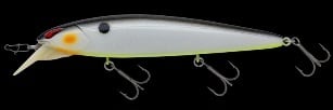 レイダウンミノーMID110HF(ハイフロート)に採用するのがボーンホワイト系ABSマテリアル。クリア系ABSに比べ低比重な特性を持ち、同形状ならばより浮力を高く、レスポンスの鋭いアクションを発生することができます。110HF専用ウエイトセッティングと相まって、ハイフロートの狙いであるボディで水を持ち上げてより強い波紋を作り出す浮上力と、水面直下・短距離での回数の多いフラッシング、アップテンポなアプローチを実現するマテリアルです。